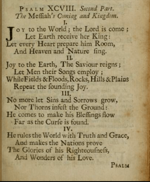 Everything glorious about this book is epitomized in its most famous paraphrase, given in the book as “Psalm 98, Second Part” and subtitled “The Messiah’s Coming and Kingdom,” but known today by its first line:
